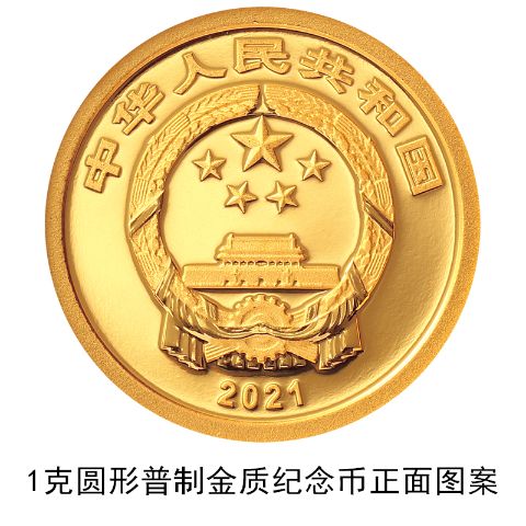 (一)1克圓形金質紀念幣為普制幣,含純金1克,直徑10毫米,面額10元,成色99.9%,最大發行量100000枚。