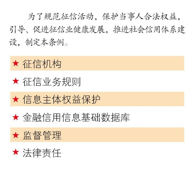 2013年,國務院頒布《征信業管理條例》,人民銀行配套出臺《征信機構管理辦法》、《企業征信機構備案管理辦法》、《征信投訴辦理規程》等一系列制度及行業標準,規范了征信機構等市場準入,明確了征信業務活動規則。2016、2017年,人民銀行分別印發《中國人民銀行關于加強征信合規管理工作的通知》(銀發〔2016〕300號文)、《中國人民銀行辦公廳關于加強征信系統查詢用戶信息管理的通知》(銀辦發〔2017〕164號文)等規范性文件,加強和完善了征信管理法規制度建設。