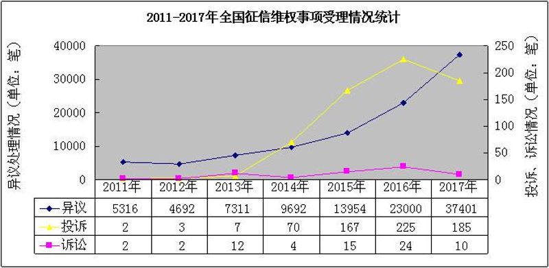 一是建立和完善征信管理監測系統。建立征信日常業務報備制度,建設征信管理監測系統和違約率檢驗系統,開發運行信息主體救濟管理子系統。從2011到2017年,共受理投訴業務621筆,辦結率達到100%,維權管理水平得到有效提高。